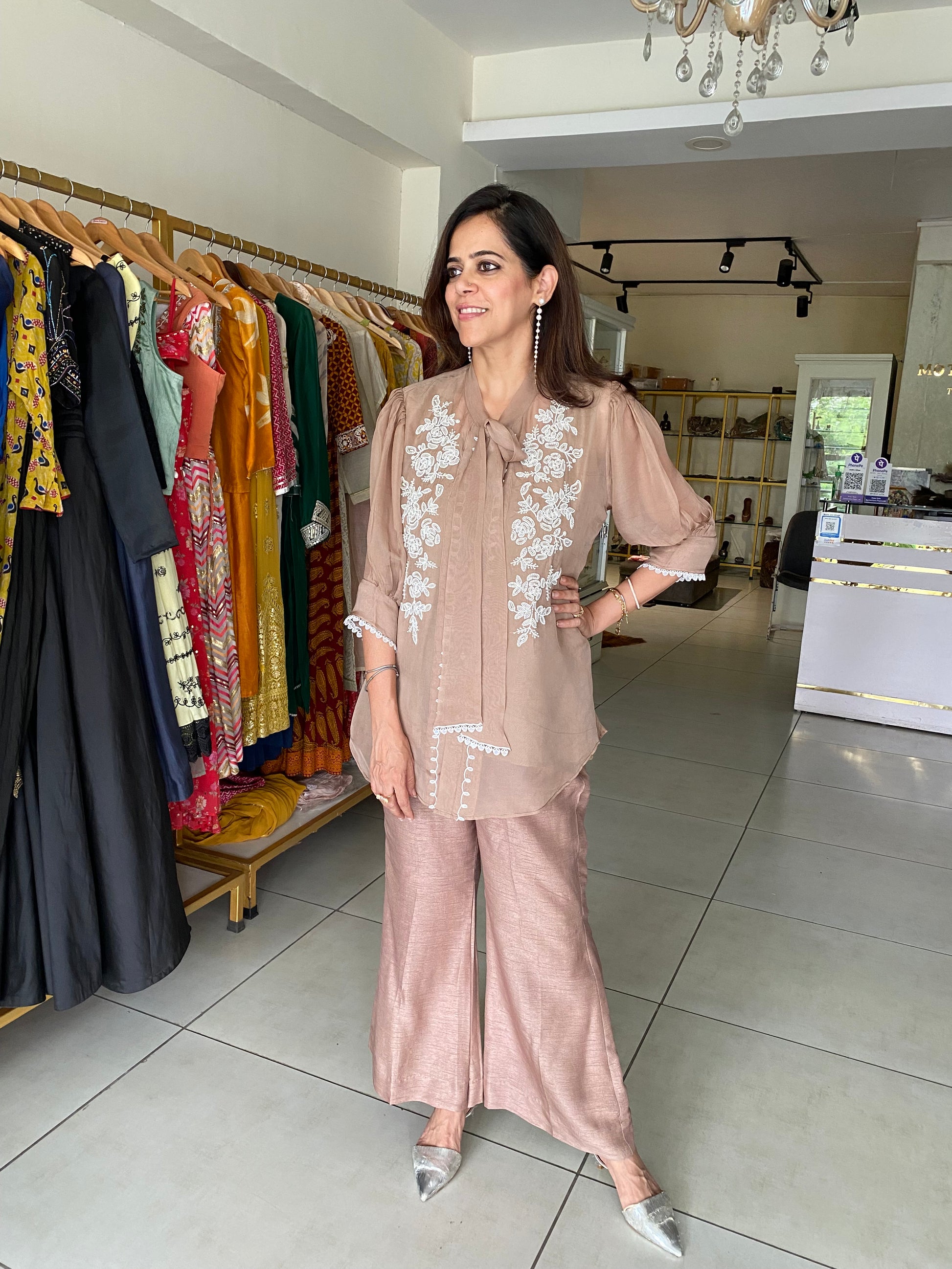"Elegant fusion of organza and cotton! šš»āØ Delicate handwork adds a touch of sophistication to this stylish top. Perfect for any occasion! š"
