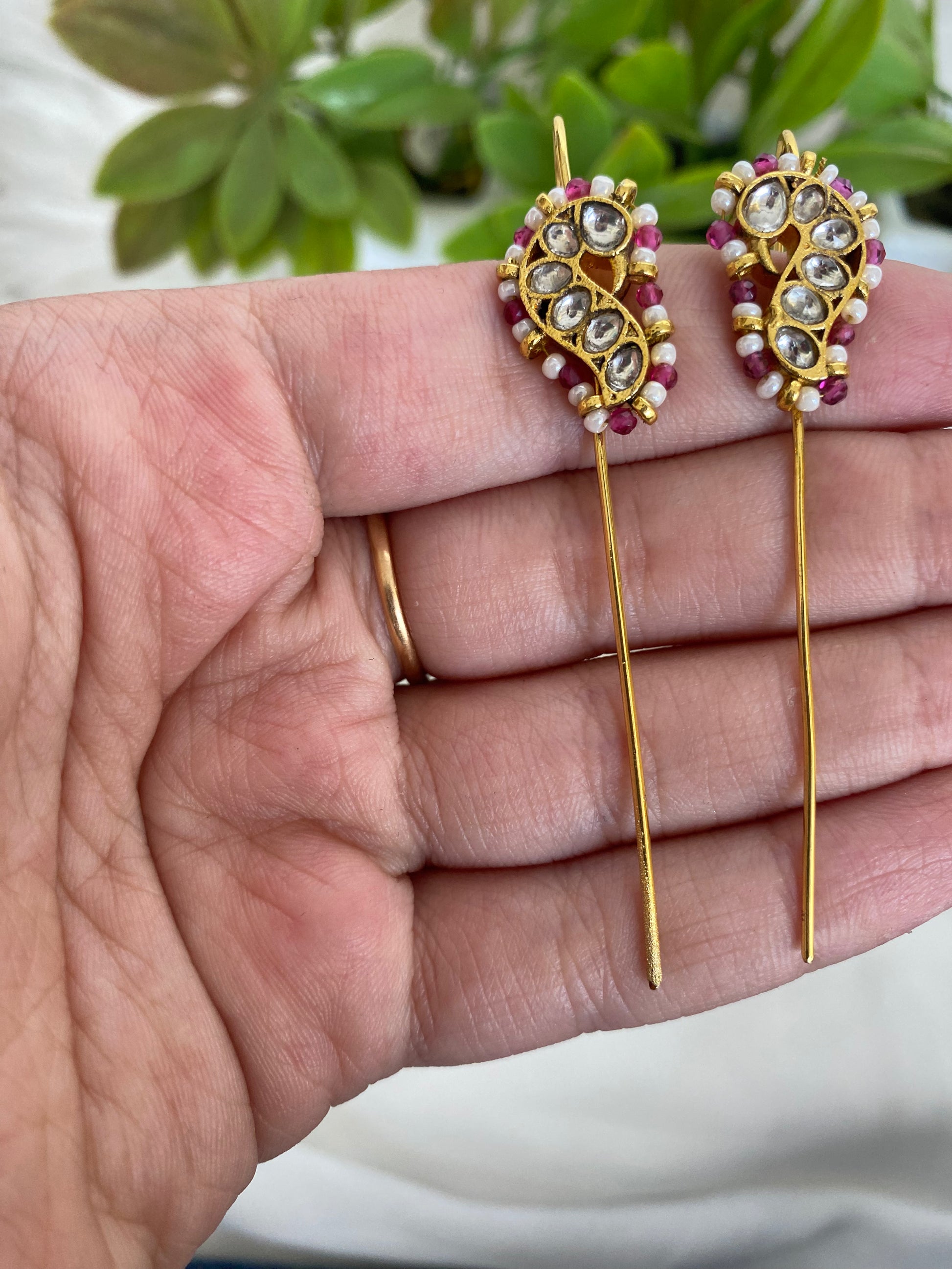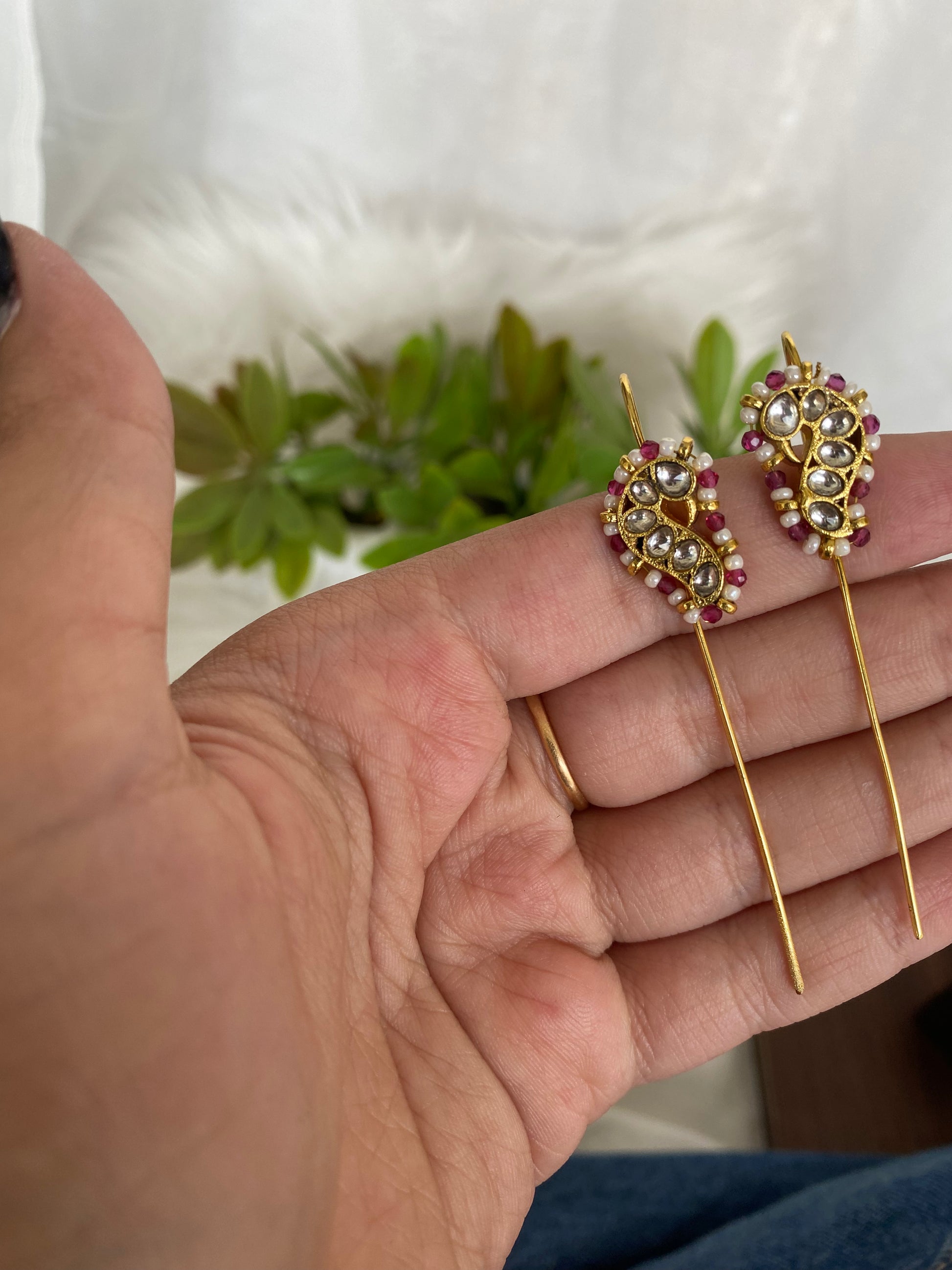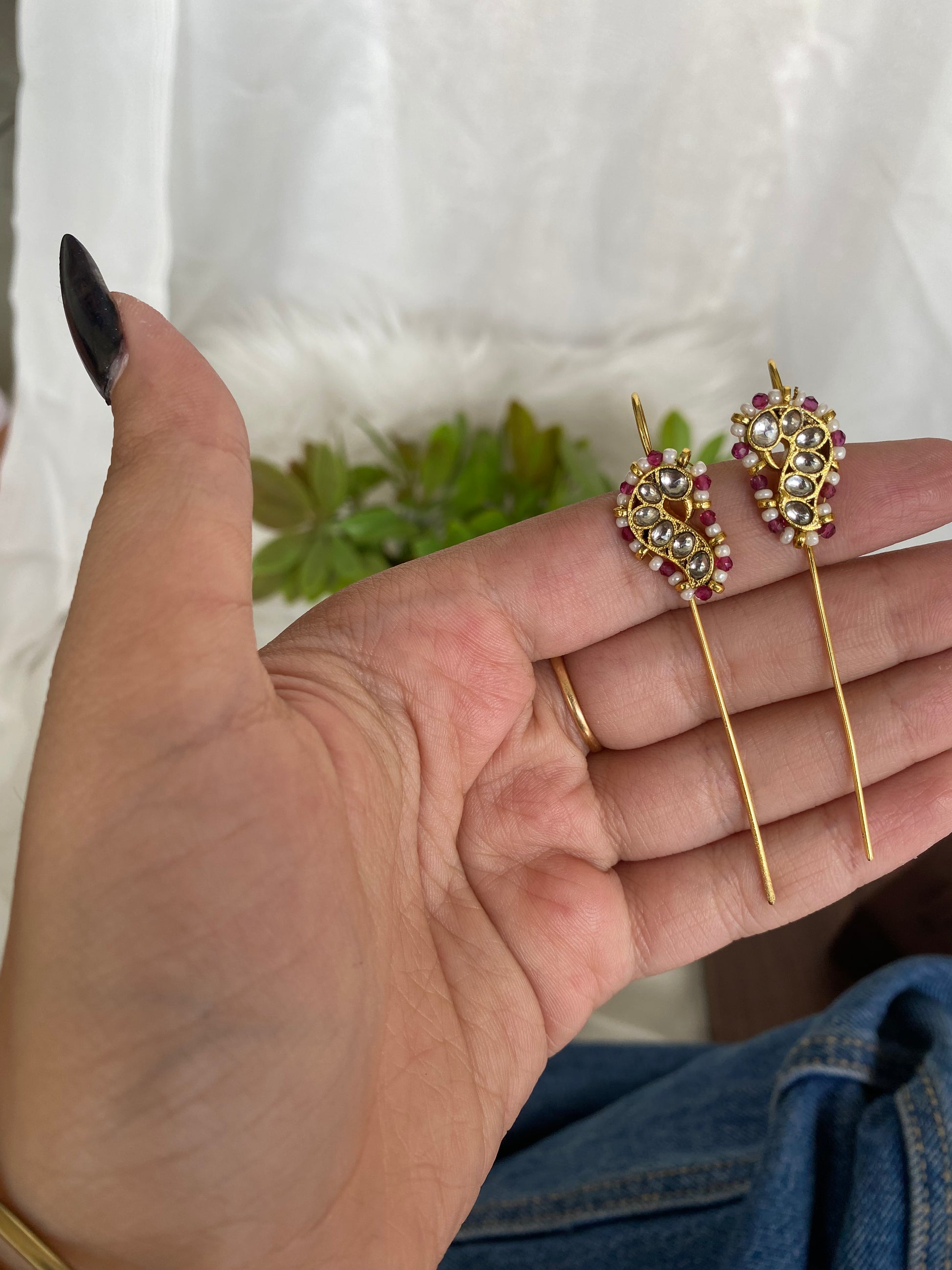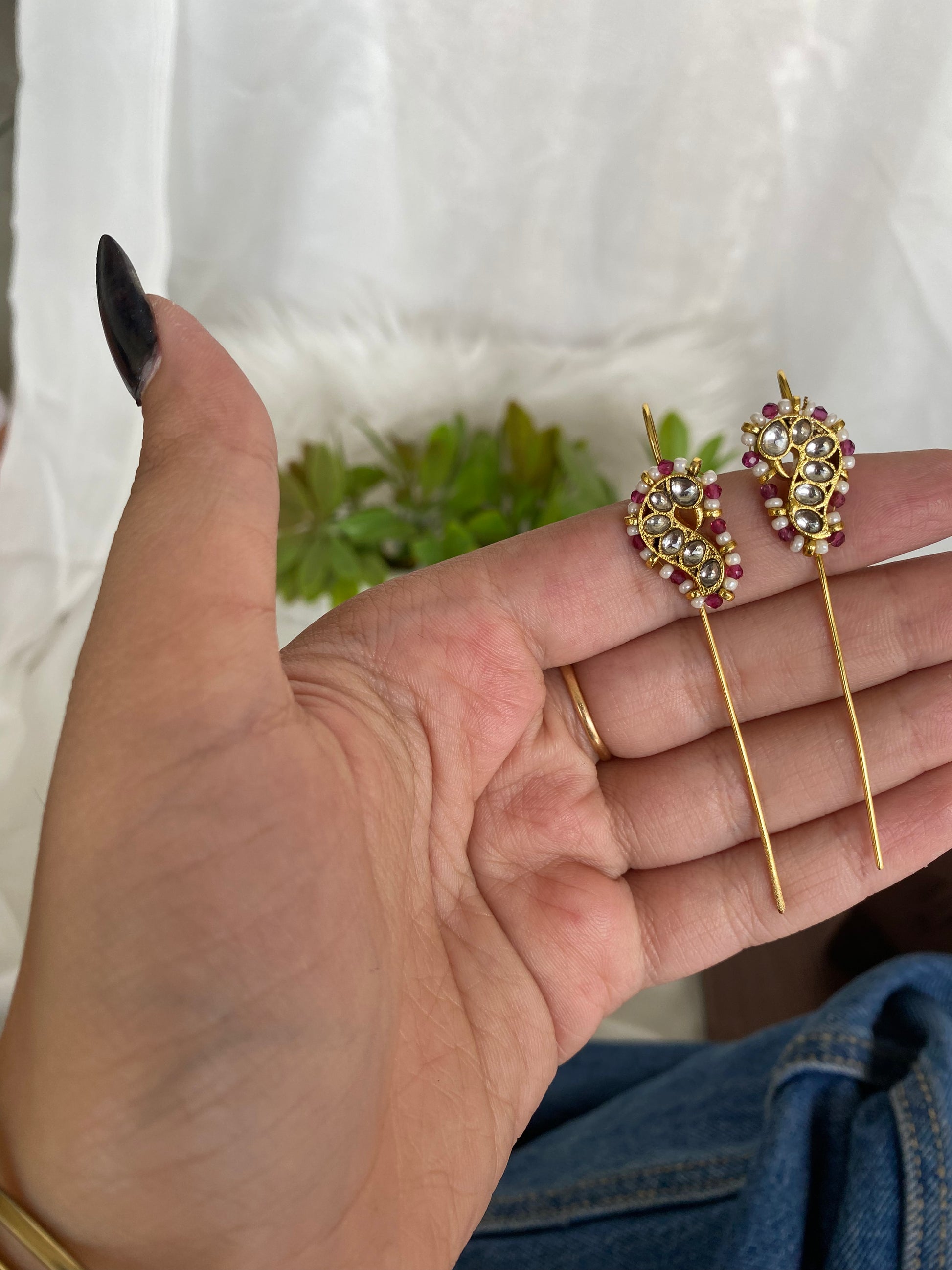 | Pink Bugadi Earrings – a vibrant blend of tradition and charm. Crafted with intricate detailing, perfect to pair with ethnic or fusion looks. |