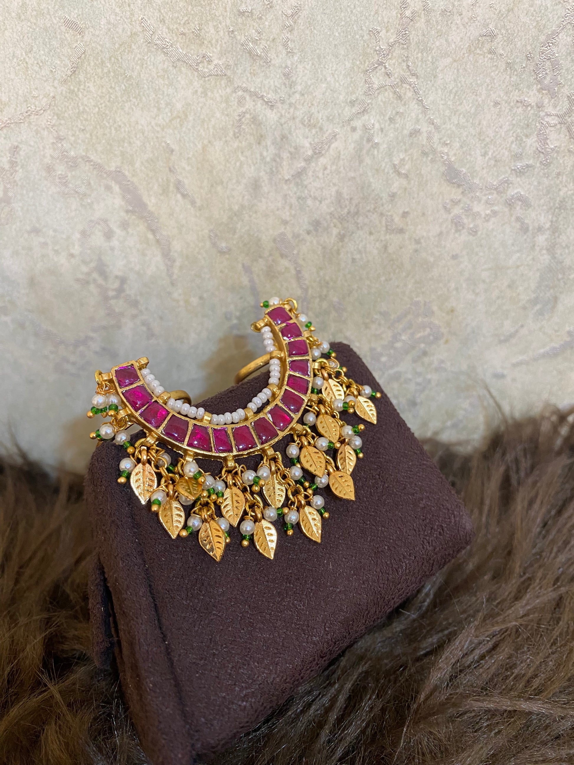 | Crafted with exquisite Jadau craftsmanship, featuring brilliant polki stones Adorned with intricate gemstone detailing that enhances its regal charm Designed to make a statement with its bold and elegant silhouette Perfect for bridal occasions, festivals, and other celebratory events A timeless piece that adds a touch of luxury and grace to any ensemble |