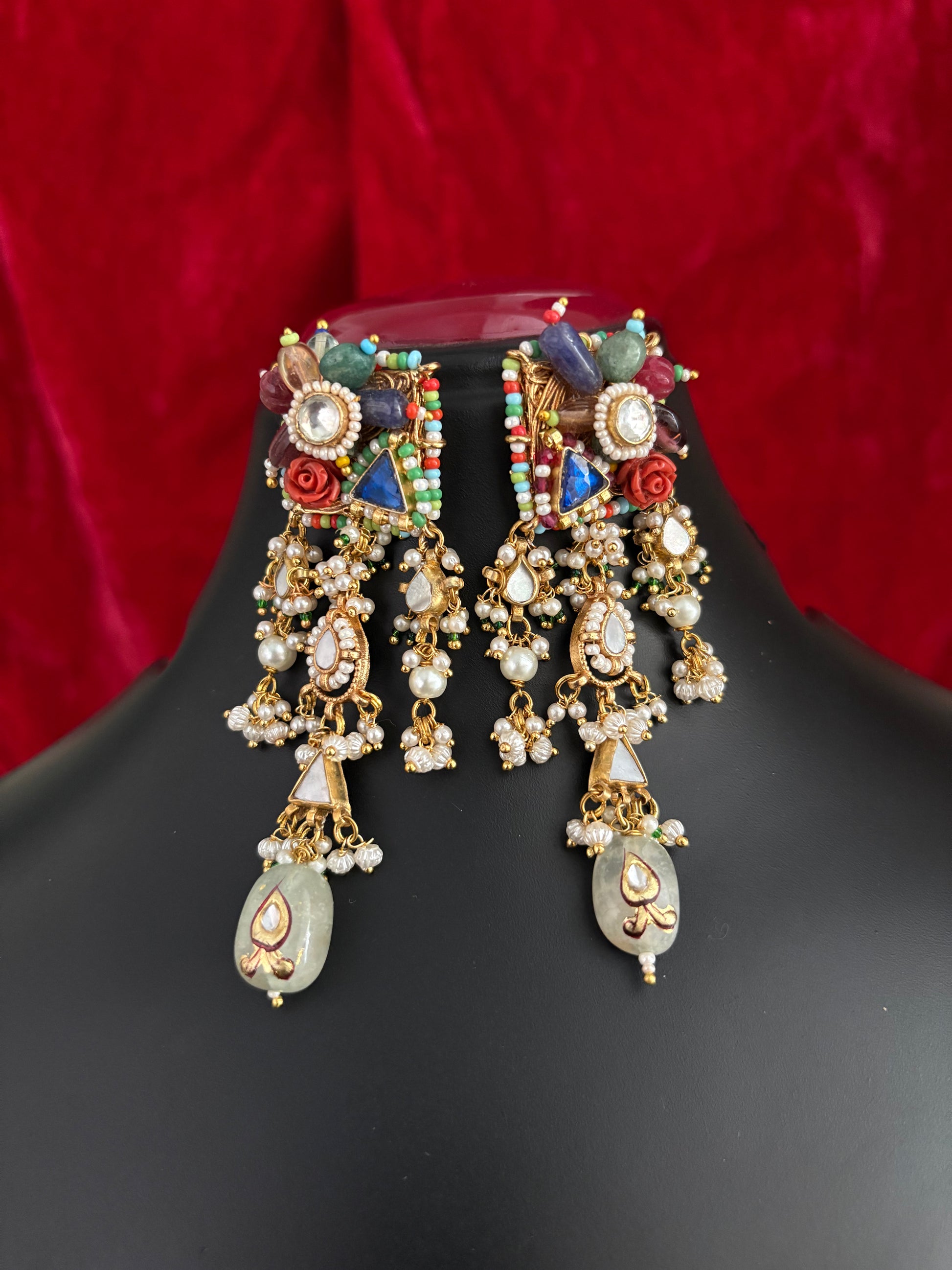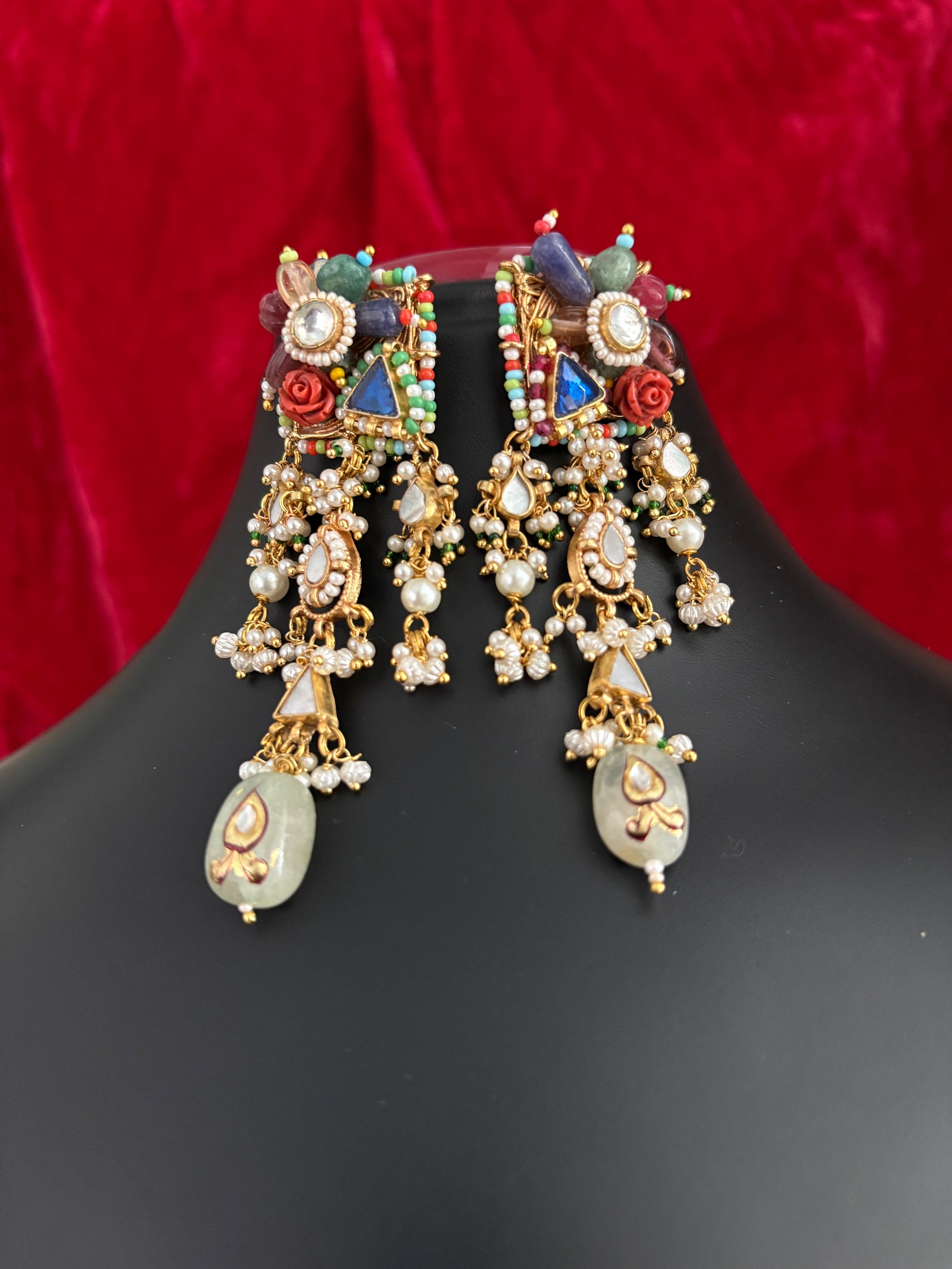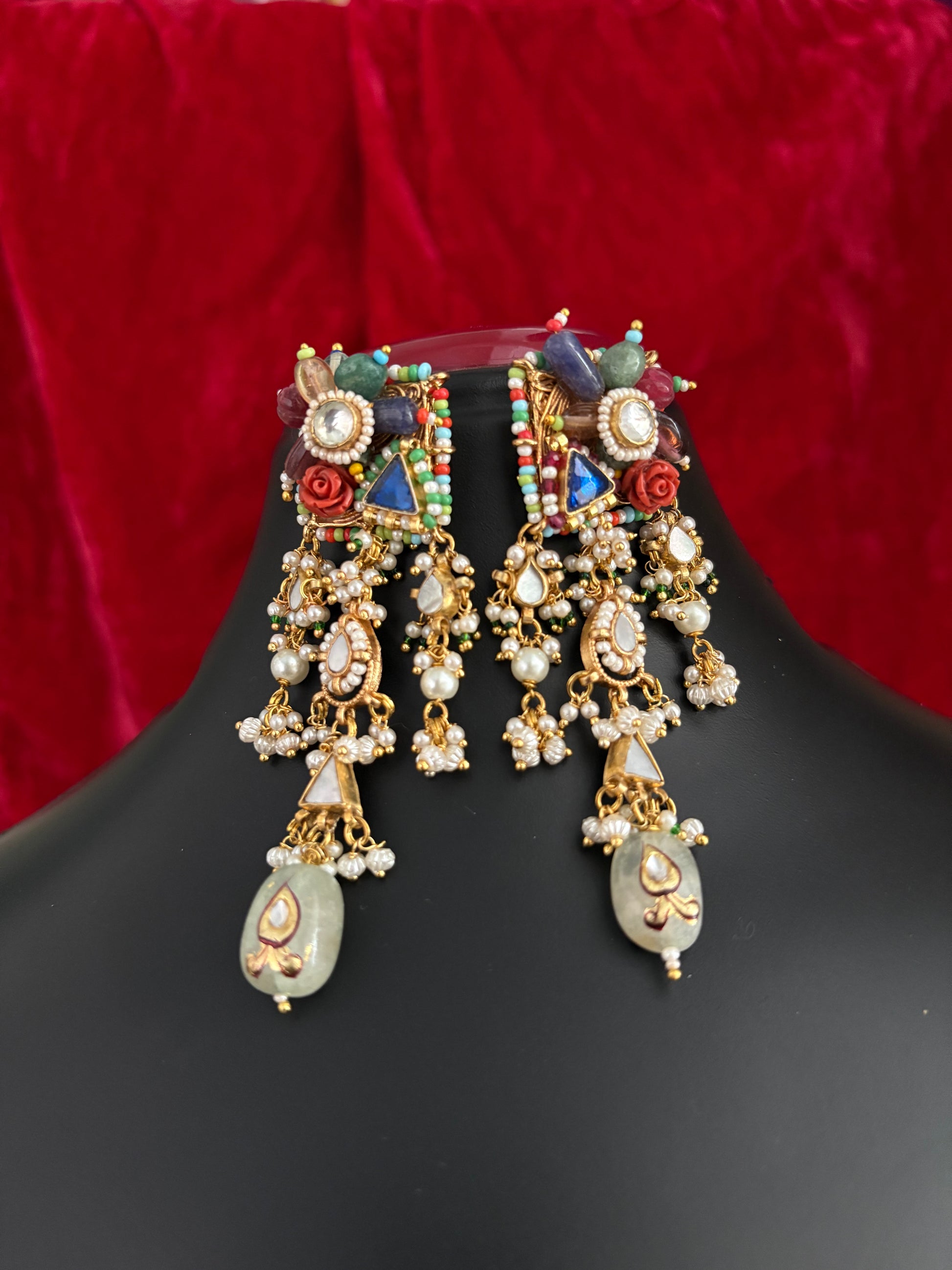 | Rooted in the grandeur of Indian heritage, the svara Jadau Earrings exude timeless elegance with their intricate craftsmanship and regal appeal. Featuring meticulously set uncut stones in traditional jadau artistry, these earrings shimmer with sophistication, making them perfect for weddings, festive occasions, and special celebrations. Their lightweight design ensures comfort without compromising on luxury, allowing you to embrace tradition with effortless grace. • Exquisite Jadau Craftsmanship – A tribute to heritage and artistry. • Regal & Timeless – Classic elegance with a contemporary touch. • Lightweight Comfort – Designed for effortless, all-day wear. • Perfect for Celebrations – Elevate festive and bridal looks with ease. |